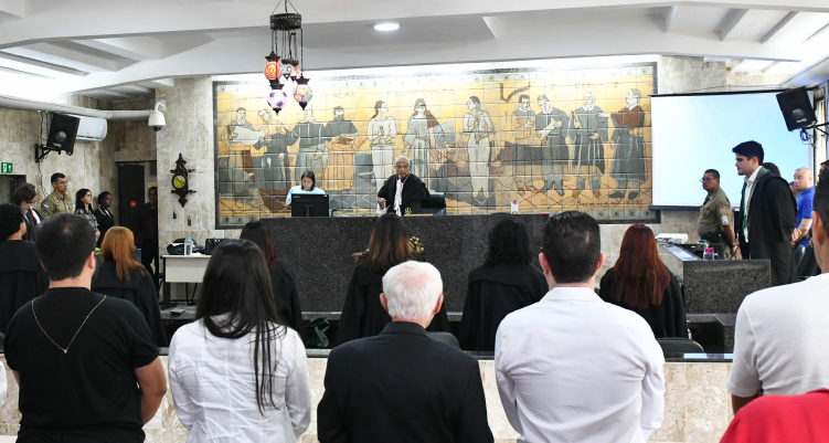 COMO FOI - a sessão do Tribunal do Júri foi realizada no Fórum Thomaz de Aquino, no Centro do Recife, com a participação do réu através de videochamada, já que ele se encontra recluso em um presídio na cidade de João Pessoa, na Paraíba.